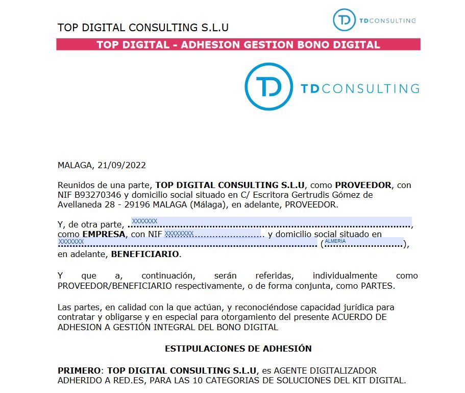Contrato mediante el cual te comprometes a invertir el Kit Digital con Caja Rural del Sur y su Agente Digitalizador*
