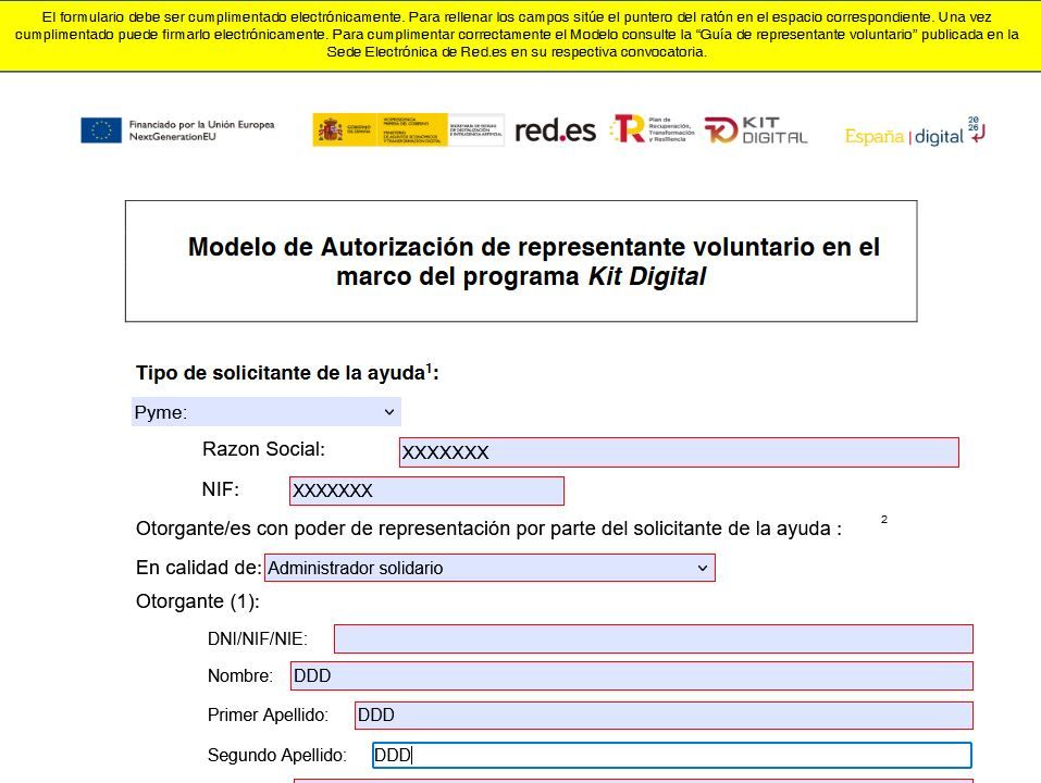 Documento por el cual autorizas a Caja Rural del Sur y a su Agente Digitalizador* para solicitar el Kit Digital en tu nombre.